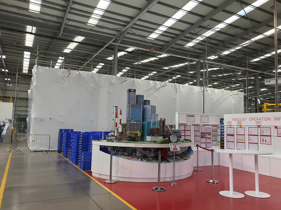EcoShrink installed internal dust screening at Norgren in Lichfield to control dust and debris during works in an operational environment. The objective was to protect sensitive machinery and equipment by creating a controlled screened area that reduced airborne dust migration and helped keep adjacent zones cleaner throughout the programme.